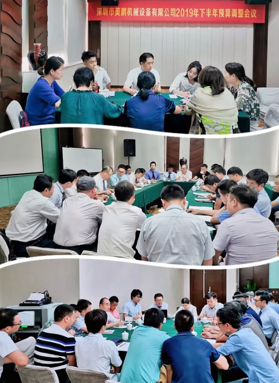 7月13日,深圳市美鵬機械設備有限公司在深圳易尚北方酒店召開(kāi)了2019年下半年預算調整會(huì )議,總公司副部長(cháng)及以上人員、各分公司經(jīng)理及服務(wù)經(jīng)理,租賃公司經(jīng)理,工廠(chǎng)總經(jīng)理及廠(chǎng)長(cháng),各區域會(huì )計、美瑞克公司經(jīng)理等人員參加了本次會(huì )議。會(huì )議在上午八點(diǎn)半準時(shí)開(kāi)始,由財務(wù)部??偙O主持。